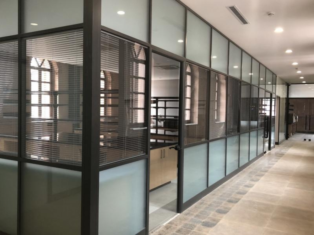 Düşey profilsiz (Cam cama) tek camlı bölme duvar sistemi